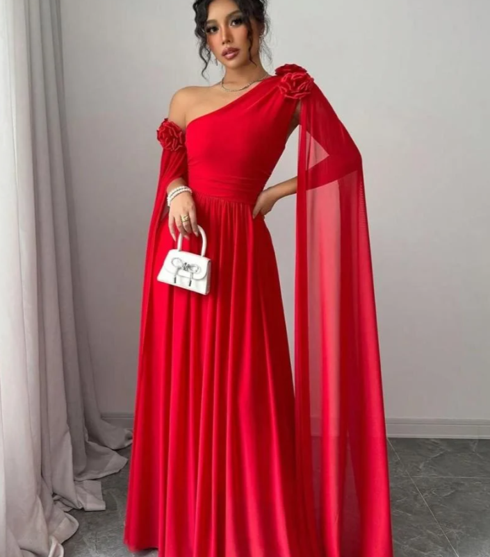 - الفساتين بقصة الكتف الواحد (One-Shoulder Dress): مثالية لحفلات المساء.